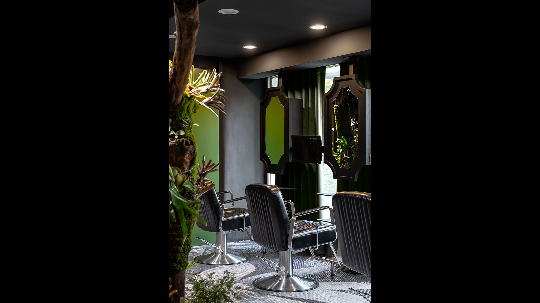 細膩的氛圍遞變感染心境,大自然中的有形無形與光影變化襯托出髮廊裡愜意美好的意趣,這座城市綠洲,期望為顧客帶來不同的感官體驗與極致的享受,在這繁華都市中擁抱自然的樣貌,感受空間中各種元素的衝撞、拆解與結合,使一切繁雜由此退去,在自然和精細間取得平衡。